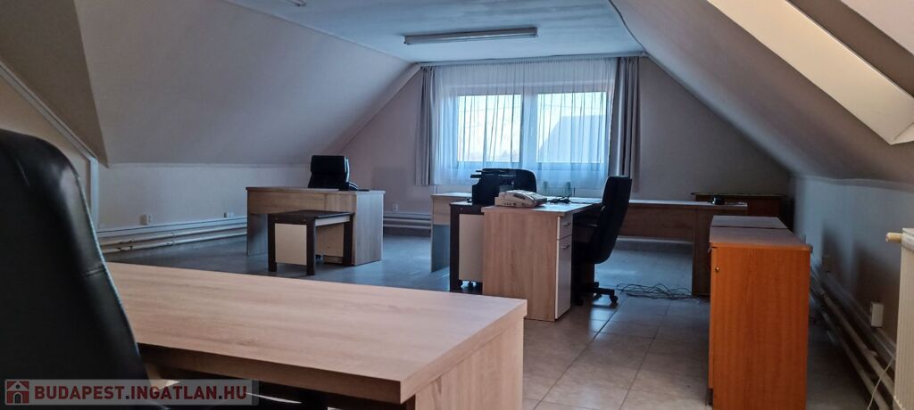 Az emeleten 2 iroda ( 60 m2 és 75 m2) is kiadó, ahol mosdó és egy konyha külön található.