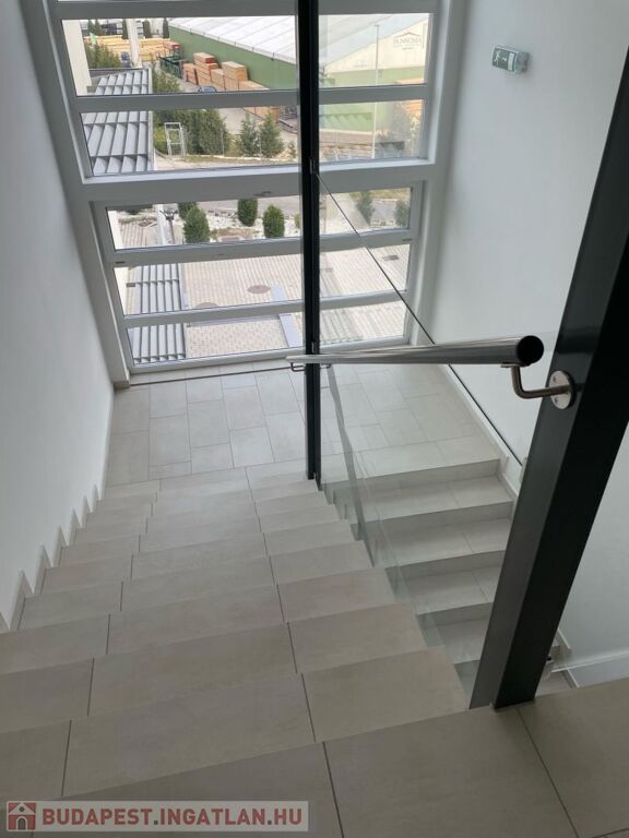 Az első emeleten 224 m2 iroda és szociális rész mellett található az ESD padlóval borított, 5,4 m belmagasságú 634 m2-es termelő terület.