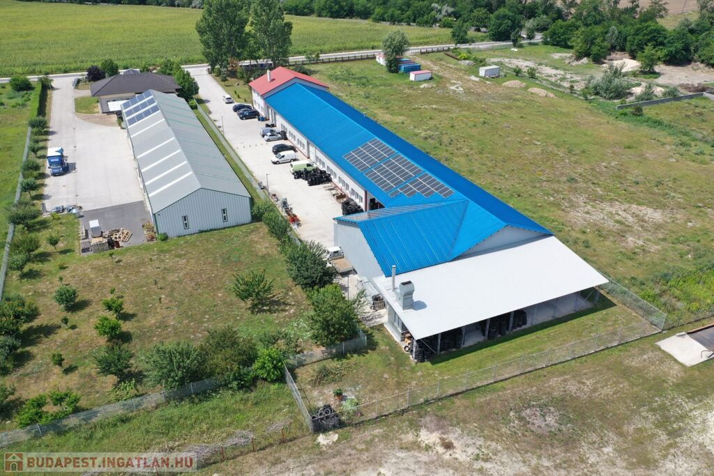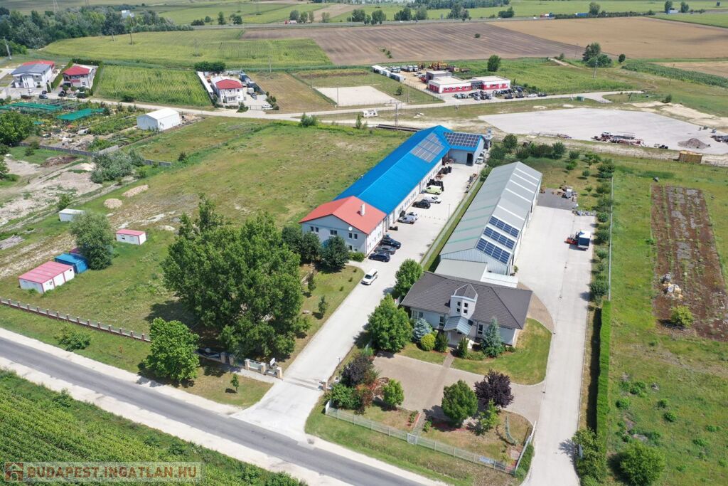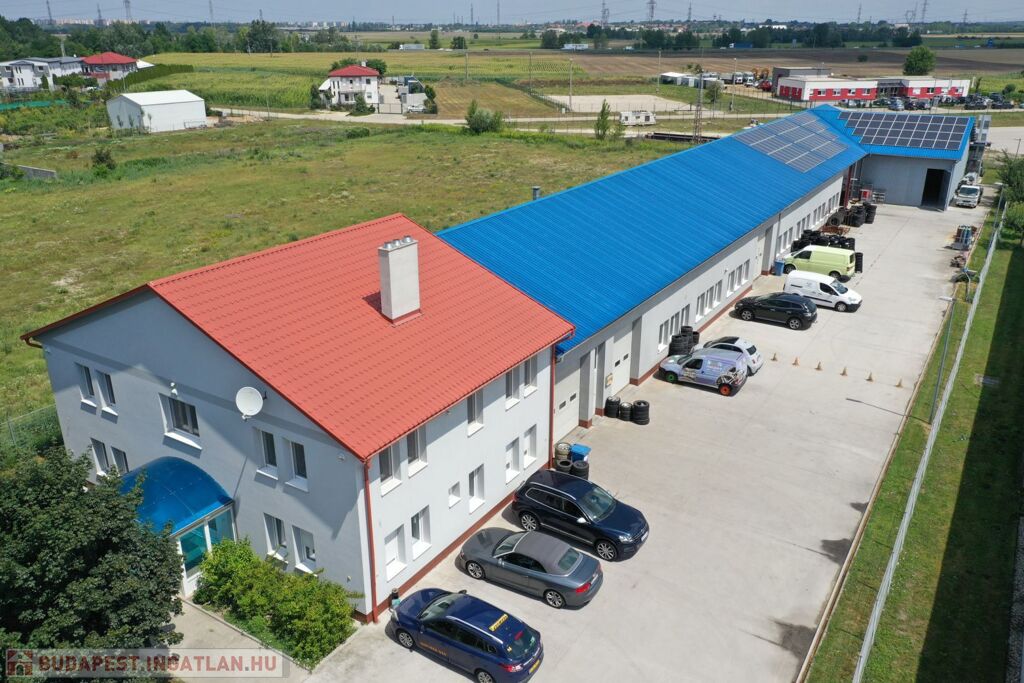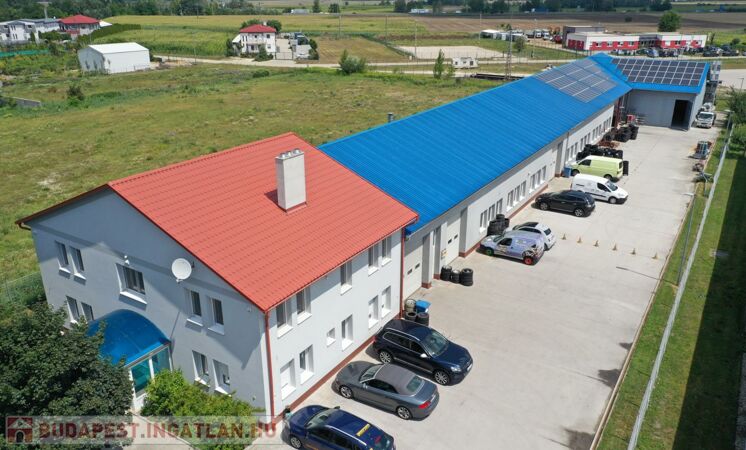 Győrújbarát ipari parkjában, modern épített környezetben, 5.500m2-es, telken 2014-ben épült, gyártásra, raktározásra alkalmas 1.328m2-es csarnok épület, 224m2 iroda és szociális részekkel kiadó.