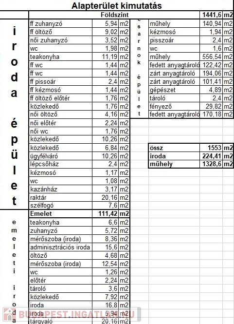 A 2014-ben épült felépítmény iroda fejépülete 38-as téglaszerkezetből, 15cm-es szigeteléssel, 3 rétegű nyílászárókkal épült. Mind az iroda, mind a szociális felületek a mai kor igényeinek megfelelnek és megfelelő méretűek a csarnoképület kiszolgálásához. (alapterület kimutatás a fotók között).