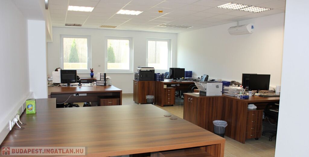A két szintes ~462 m2 hasznos alapterülettel rendelkező iroda épület, sáv alapra, 30-as tégla falszerkezettel, monolit vasbetongerendás födémmel épült, a homlokzati szigetelés 15 cm-es grafitos Dryvit rendszer, a nyílászárók műanyagból készültek. Az irodaépület földszintjén a recepcoión és a wc és modókon kívül három "normál" méretű, és nagy nagy méretű iroda helyezkedik el. Az alaprajzok és a helyiséglista a fotók között megtalálható. Az emelti részen találhatók az üzemi rész öltözői, zuhanyzói, a kazánház és a konyha-étkező, ami nagyobb meetingek, bemutatók tartására is alkalmas.