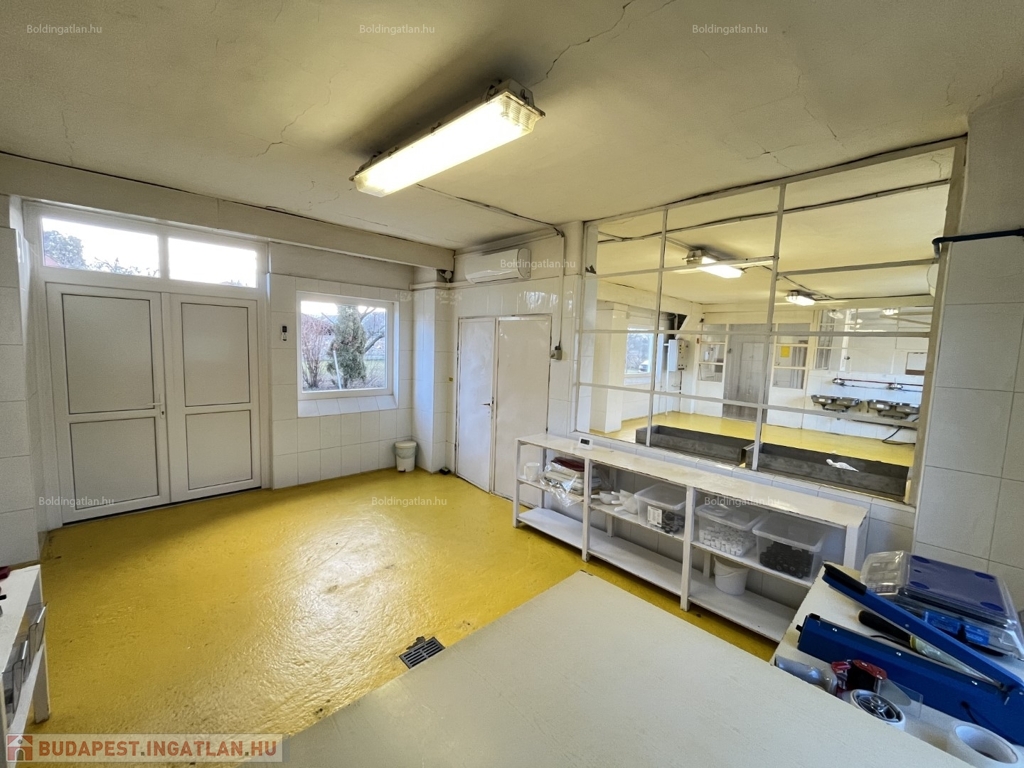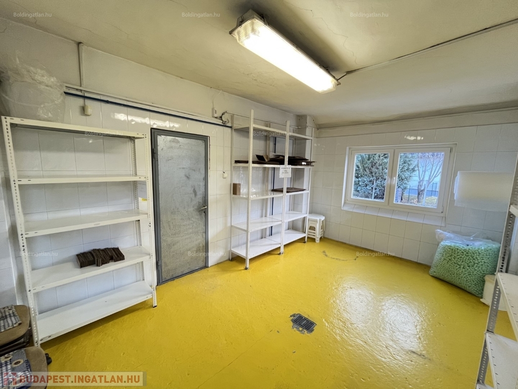 Kaposváron (Kaposfüred városrészben) az Állomás utcában rendezett környezetben található, 2024-ben felújított telephelyen 223 m2-es raktár-iroda épület + 190 m2 akár élelmiszergyártásra is alkalmas épület kifejezetten hosszú távra - kizárólag egyben kiadó. A 223 m2-es épületben 3 iroda, közlekedő, konyha, zuhanyzó-wc, valamint egy 9 m2-es és egy 144 m2-es raktár 2 db garázsajtóval, akár 3 tonna teherbírásra erősített födémmel helyiségek találhatóak. A 190 m2-es épületben előtér, labor, 2 gyártóhelyiség, külön férfi és női zuhanyzó-wc, garázs-kazánház helyiségek találhatóak. Az épületek fűtése Brötje kombi kazánnal és elektromos fűtőpanelokkal megoldott, valamint a kisebbik helyiségben Gree típusú hűtő-fűtő légkondicionálók is felszerelésre kerültek. Az épületek tökéletes műszaki állapotban vannak, az udvarban több teherautó is elfér, egy része térkővel borított. Az udvarra behajtás 2 db távirányítású kapun keresztül lehetséges, valamint kamerás riasztó rendszer is telepítésre került. Telek: 2.235 m2 Bérleti díj: 500.000.- Ft/hó + rezsi + 2 havi kaució (823) Amennyiben az ingatlan felkeltette az érdeklődését, kérem hivatkozzon a 823. számú ajánlatra! Irodánk címe: Kaposvár Irányi D. u. 9.