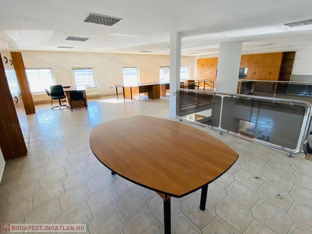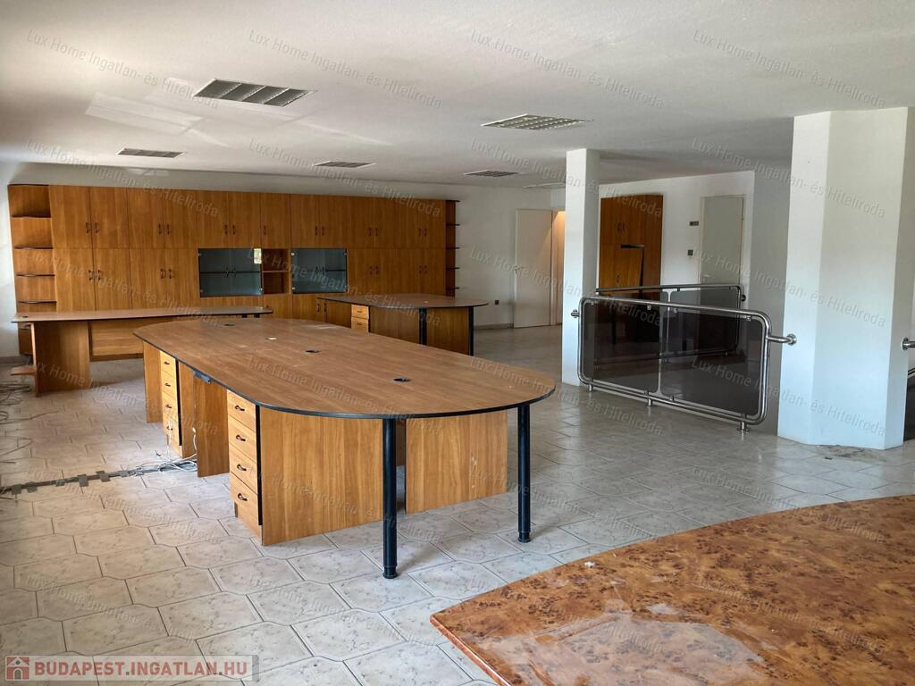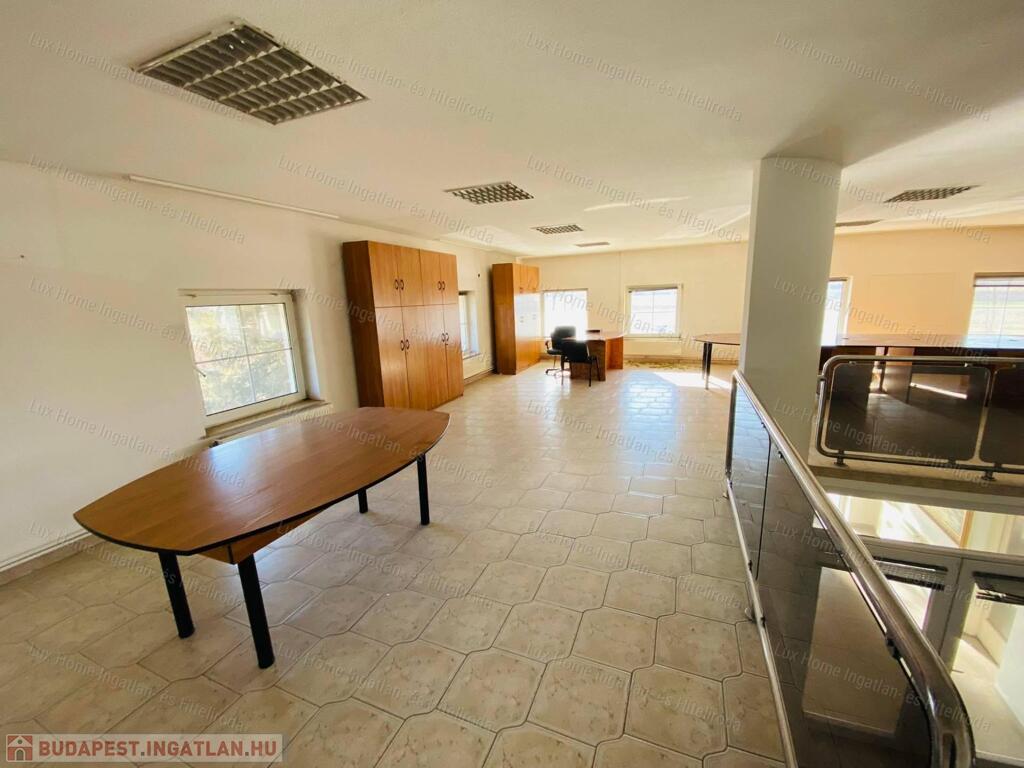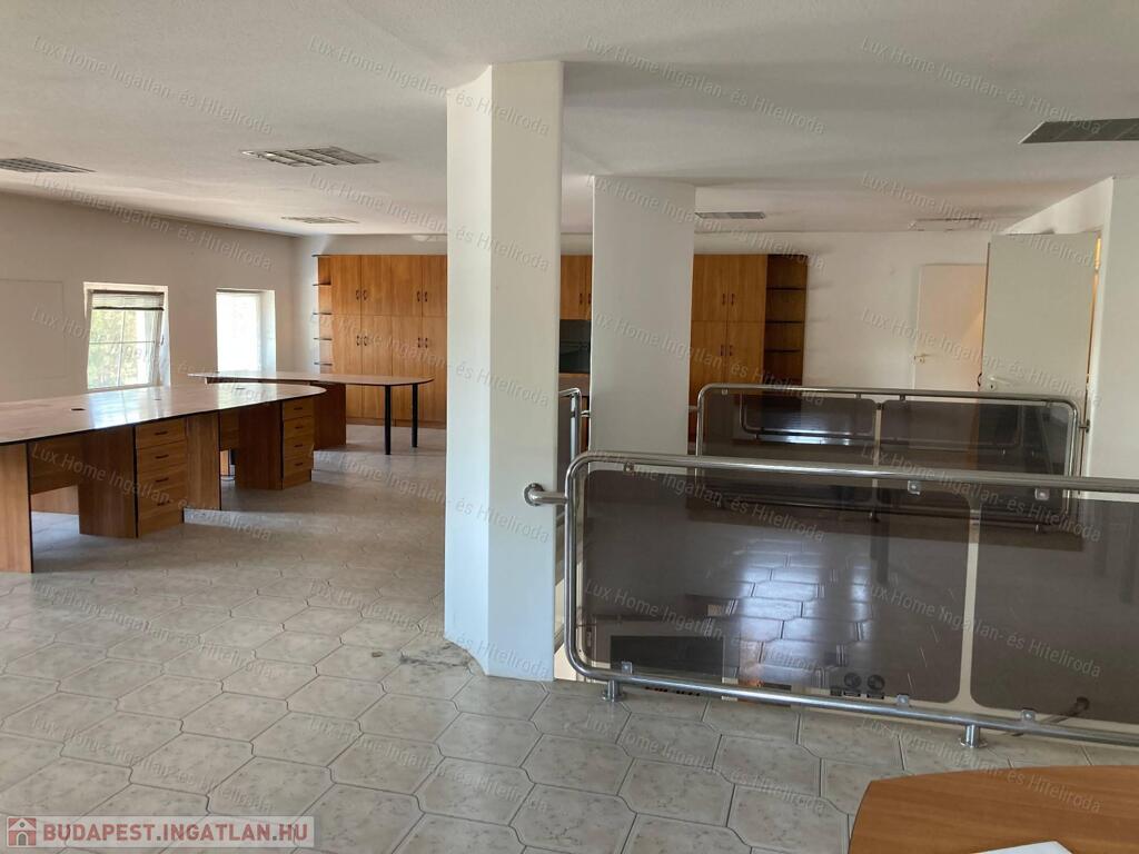 - A felső szinten egy tágas, egy légterű, 144 nm-es iroda található konyhával és mellékhelyiséggel, melynek bérleti díja havonta 200.000 Forint + rezsi költség.