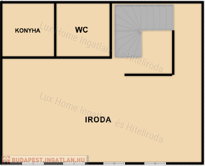 - Az alsó szinten található egy 28 nm-es kisebb iroda, közös mellékhelyiséggel melynek bérleti díja havonta 50.000 Forint + rezsi költség.