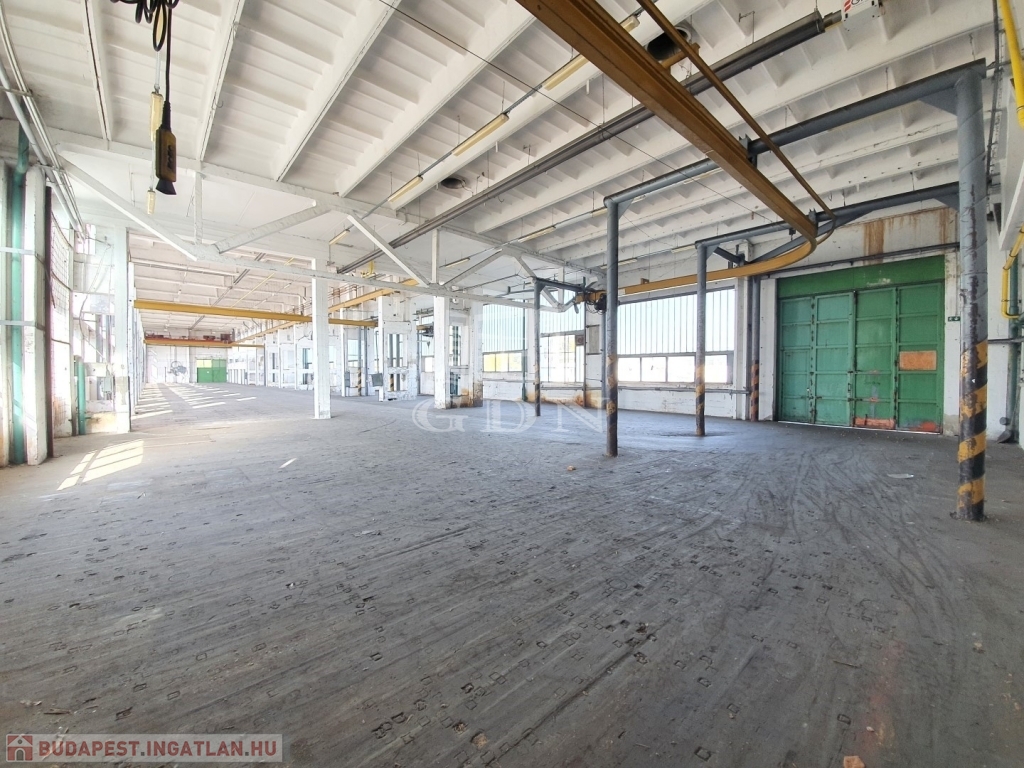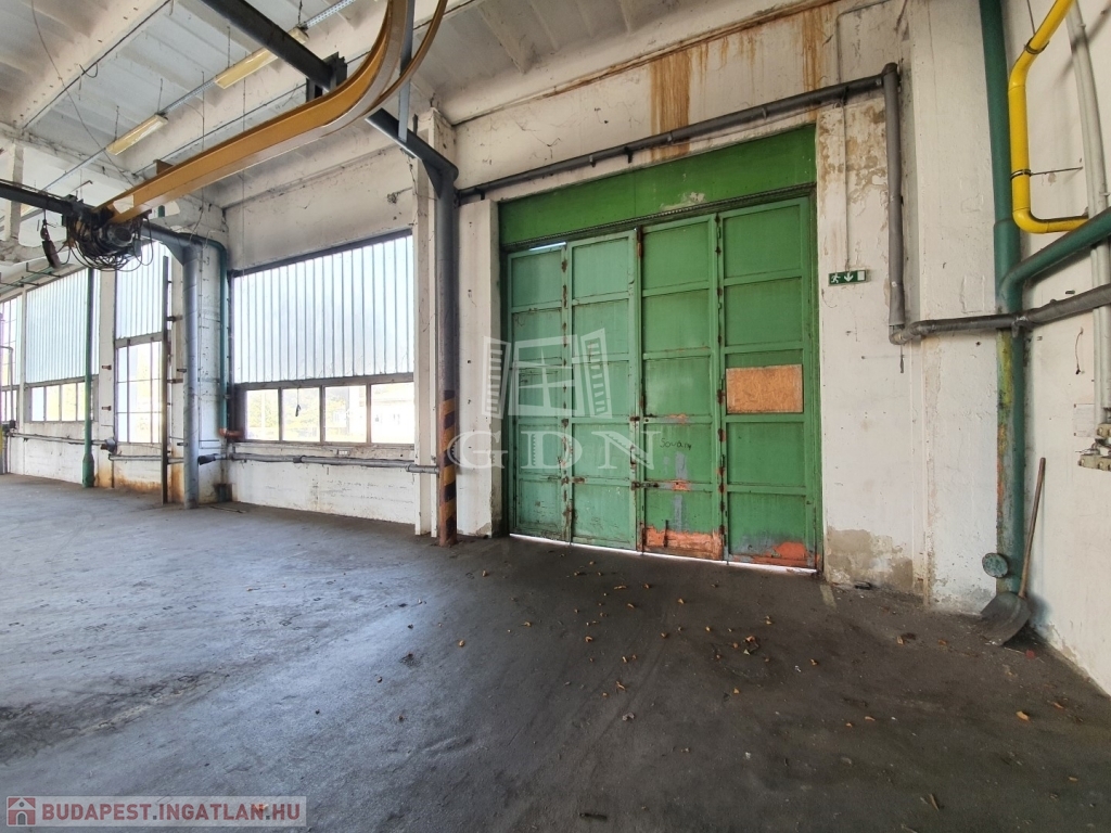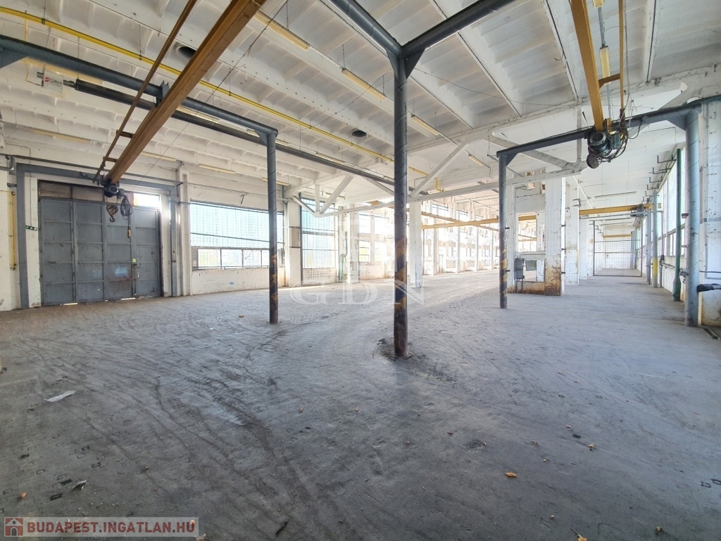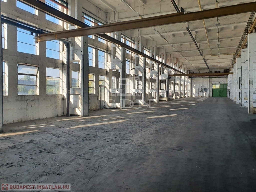 Az ipari csarnok belmagassága 8,4m, összesen 3db szintbeli ipari kapuval (4m x 4m), illetve 3db híddaruval rendelkezik melyek jelenleg ugyan nem használhatók, de üzembeállíthatók. A csarnok fűtéséről gázüzem sötétsugárzók gondoskodnak.