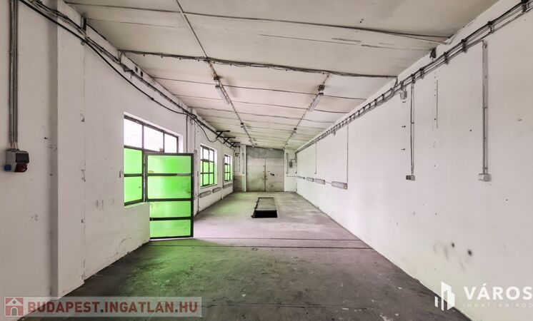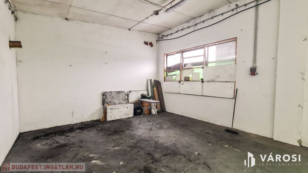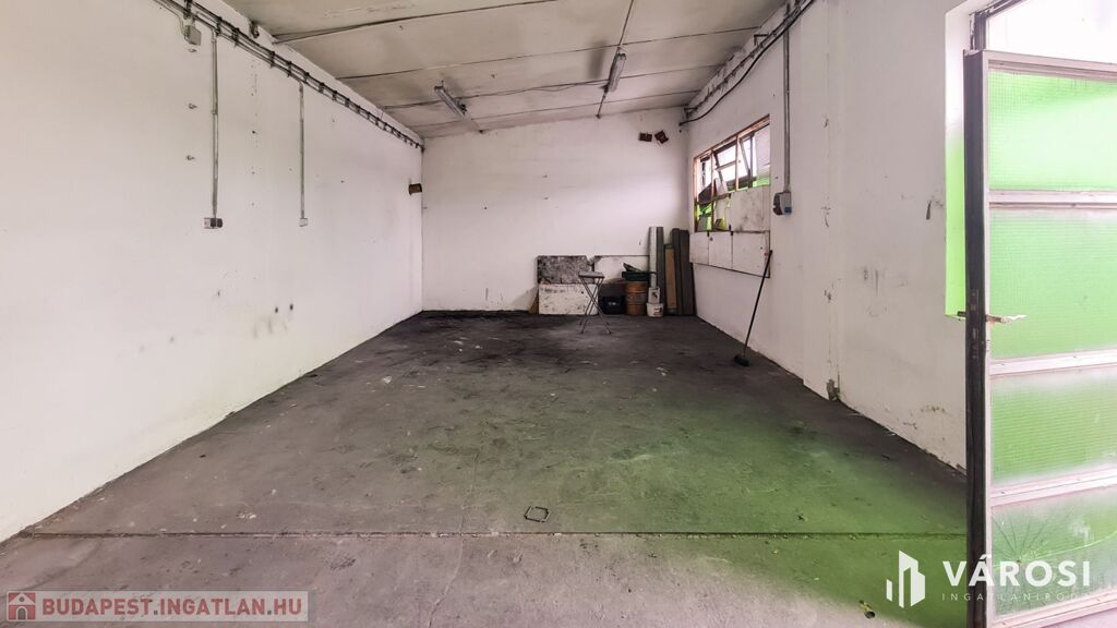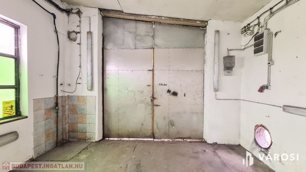 Beton burkolat épületen belül, 3X32 Amper ipari áram és vízóra van, csatorna nincs.