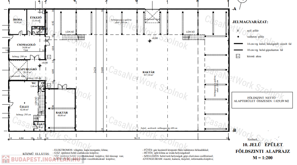 - gépészet: az épület irodai része fűthető gázkazánnal, a raktár fűtetlen