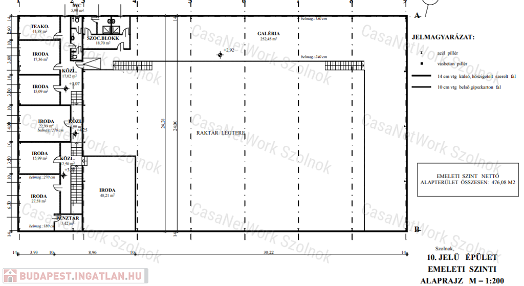 - funkció: a földszinten kiszolgáló helyiségek és raktár, az emeleten irodák és