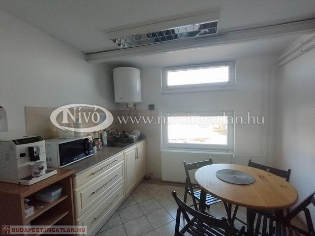 A hirdetésben a 22,84 m2-es iroda szerepel. Bérleti díj: 4.500 Ft/m2 + ÁFA, ami tartalmazza a rezsit és közös helyiségek takarítását is.