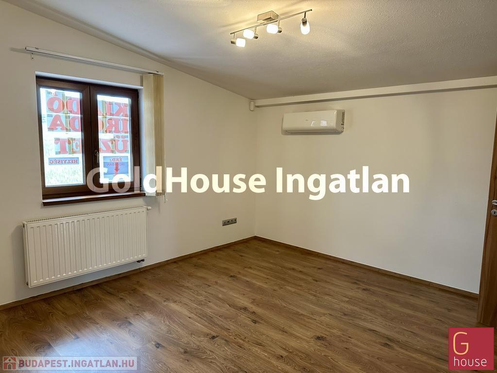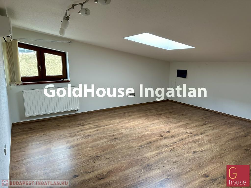 Az első emeleten található helyiség teljes alapterülete 100 m², a tető lejtős kialakítása miatt a hasznos terület 60 m², amely ideális méret kisebb irodai csapatok vagy szolgáltatói tevékenységet végző vállalkozások számára.