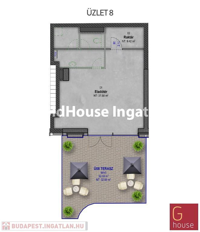 Folyamőr u., belső sétányra néző új építésű üzlet