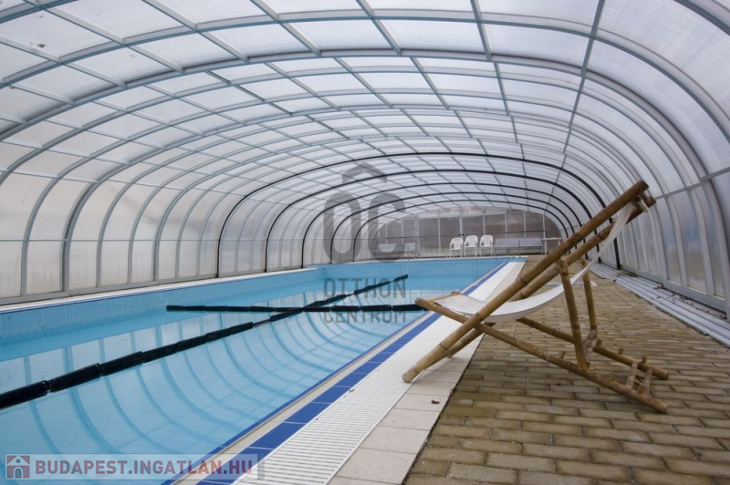 és a csodálatosan gondozott kertben feszített víztükrű medence (8X16m).