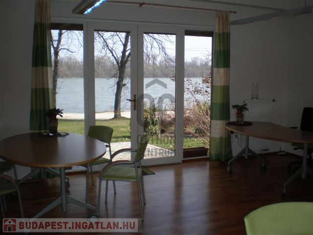 Földszinti , 2 fürdő/WC.-s , nagy egylégterű akár 50nm helység ( mely akár szeparálható egy beépített válaszfallal igény esetén ) amely 400 cm (!) belmagasságú , akadálymentes, közvetlen bejárat a Duna felől és a lakóparkból is.