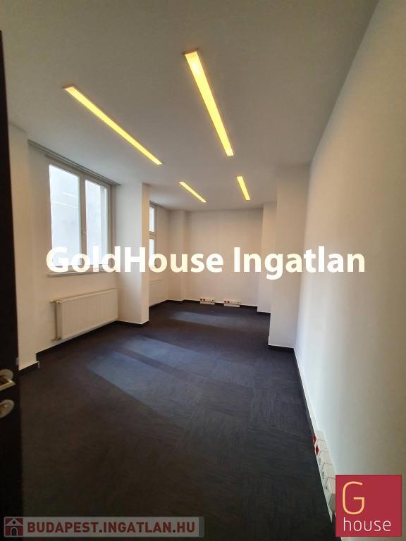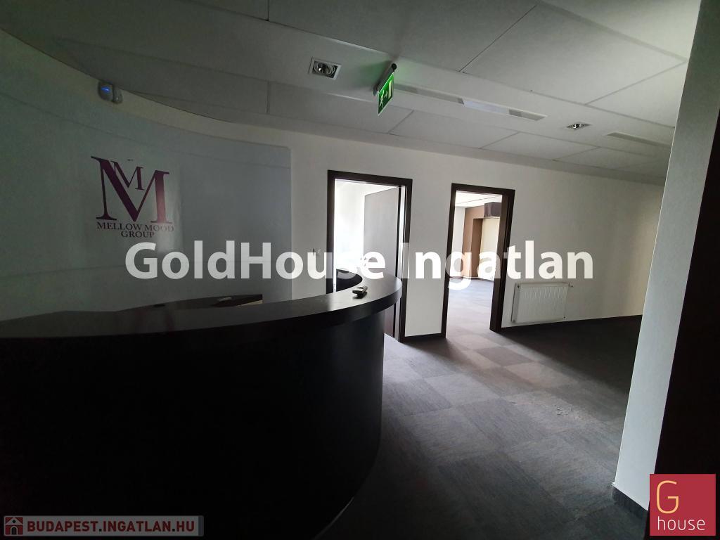 Recepció, 6 iroda, 2 mosdó, konyha van bent. Felújított, klímás, részben bútorozott.
