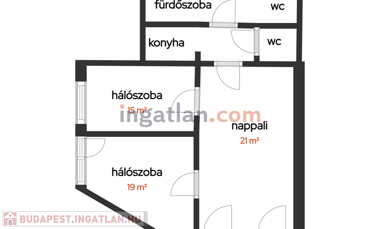 - két 18, ill. 15 m2-es külön bejáratú irodahelyiség