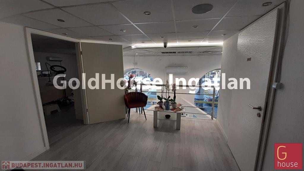 Teréz körúti nagy portálos, 140 nm-es, kétszintes, felújított, teraszozható üzlethelyiség kiadó