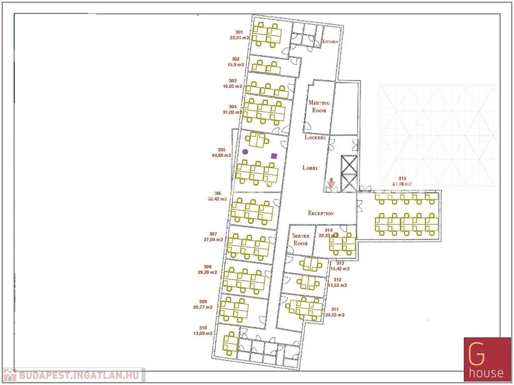 Bérleti díjak 70.000 Ft+Áfa / munkaállomás, ez a díj tartalmazza a nagy méretű tárgyaló használatát, az irodaház által kínált összes szolgáltatást, a közüzemi fogyasztások.