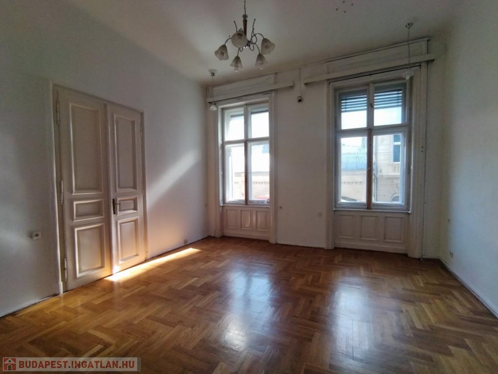 VI. Teréz körúton a Nyugati pályaudvarral szemben rendezett, lift nélküli ház I. emeletén kiadó 90 nm-es jó állapotú lakás.