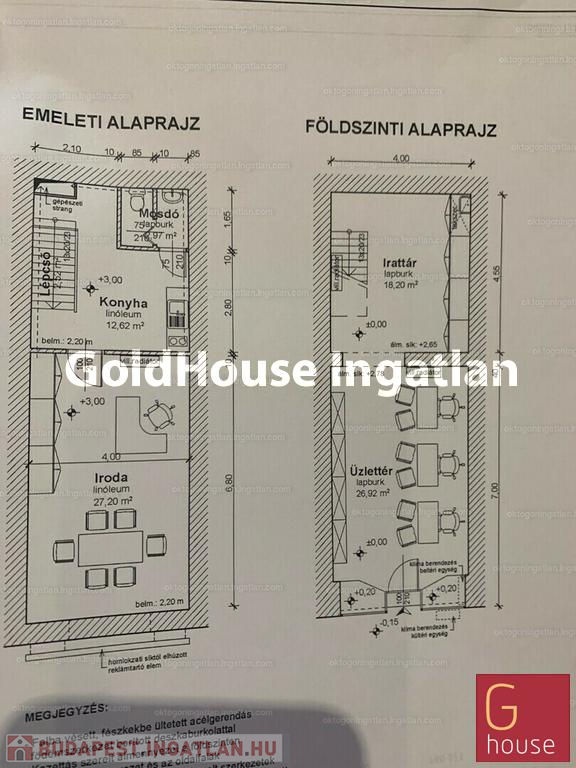 A galérián van a teakonyha, mosdó, és raktárnak vagy irodának is használható külön helyiség, így maga az üzlettér teljes egészében kihasználható. Fűtés: légkondival. Az üzlettér padlólapos, a világítás energiatakarékos.