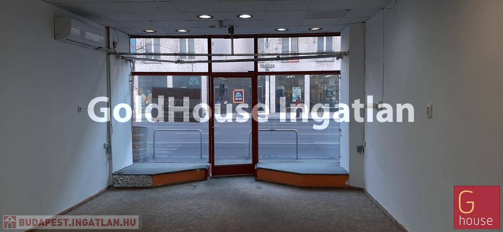 Rákóczi úton kiadó, egy kirakatos, légkondis, 54 nm+50nm galériás üzlethelyiség
