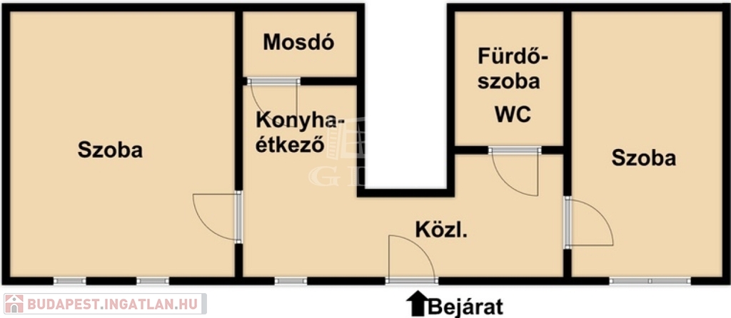 Elosztása: 2 különnyíló szoba, zuhanyzós fürdő WC-vel, külön WC, konyha-étkező, előszoba és közlekedő.