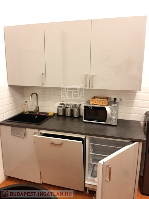 A bejáraton, a távfelügyelethez bekötött ujjlenyomatos rendszeren keresztül juthatunk. Az előtérben,újszerű konyhabútor lett beépítve, mosogatógéppel.
