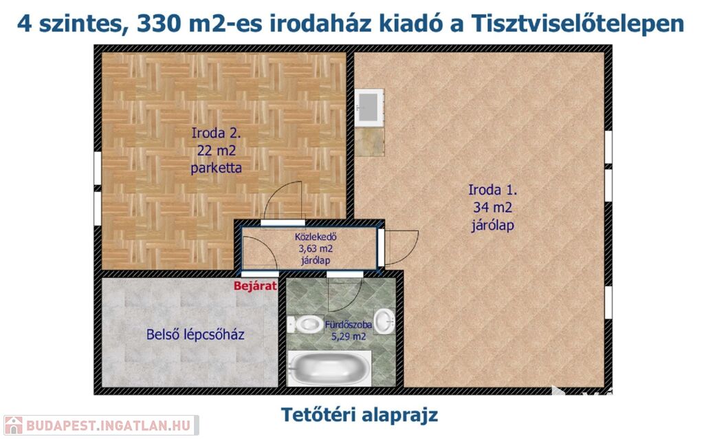NÉGY SZINTES, 330 M2-ES ÖNÁLLÓ IRODAHÁZ KIADÓ A TISZTVISELŐTELEPEN