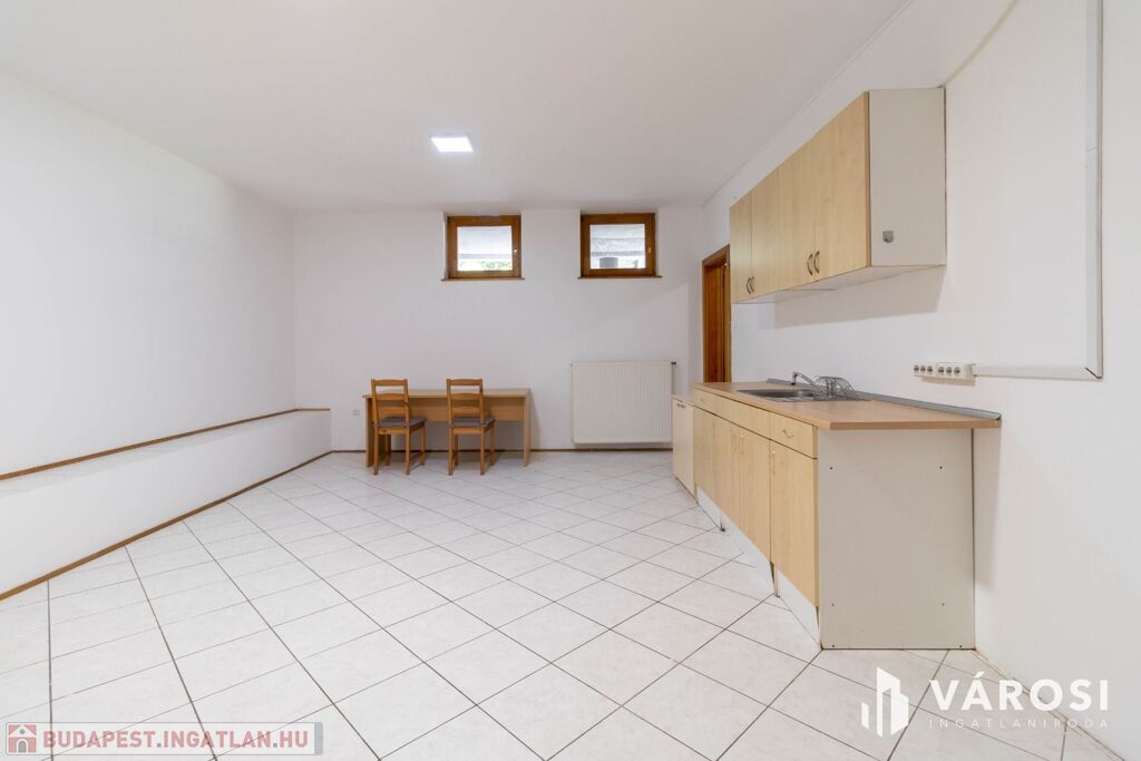 Az alagsorban tágas étkező-konyha áll rendelkezésre, amely akár 9. irodaként is használható, sőt a szauna is beüzemelhető.