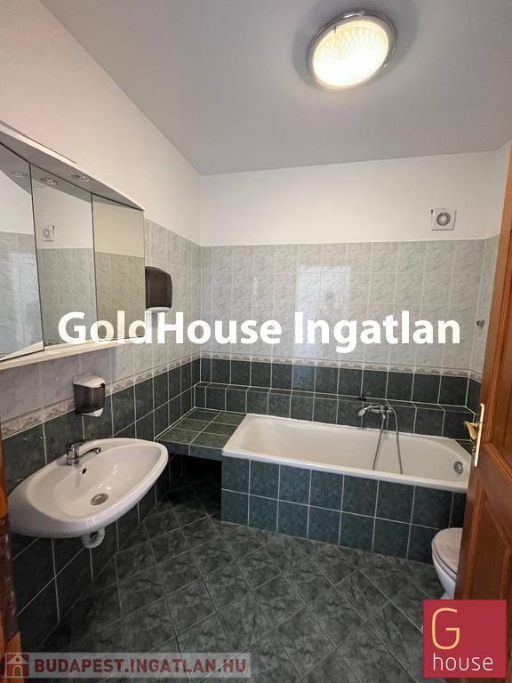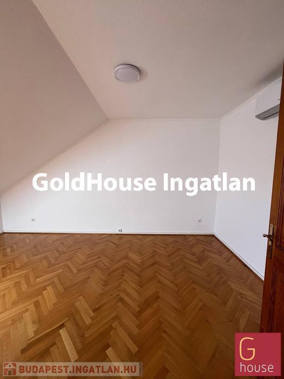 Ez összesen 9 iroda helyiség (szoba) + a mellékhelyiségek. A házon belül a szintek külön-külön is szeparálhatók a lépcsőházból. A ház kívül, belül újszerű, légkondicionált, illetve riasztóval felszerelt. A házhoz kert és terasz tartozik. Igény esetén bútorokkal vagy üresen is kiadó.