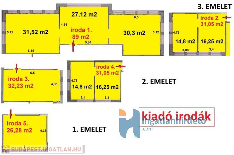 Irodák 27 m2-től 90 m2-ig bérelhetőek.
