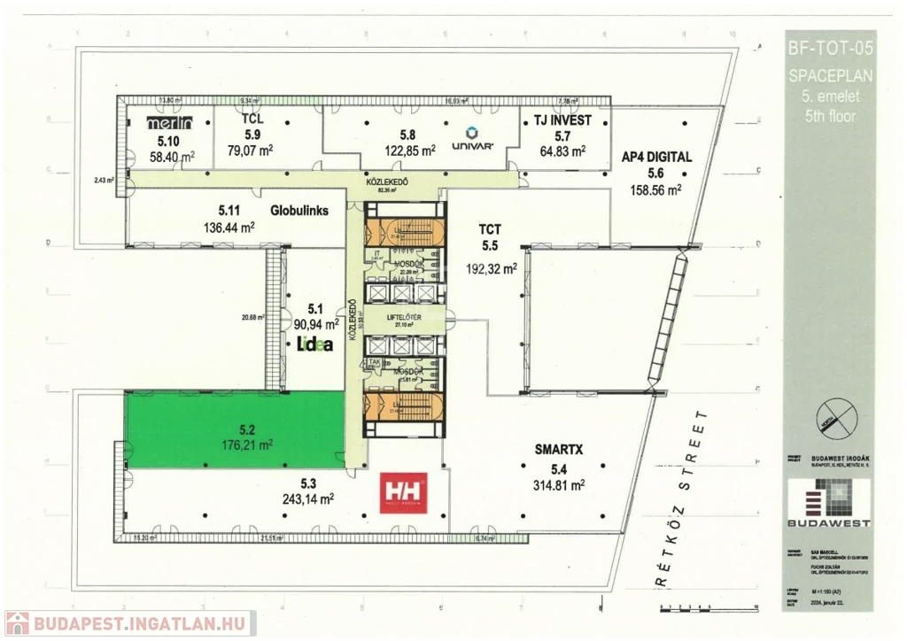 Nettó irodaterület: 176 m2