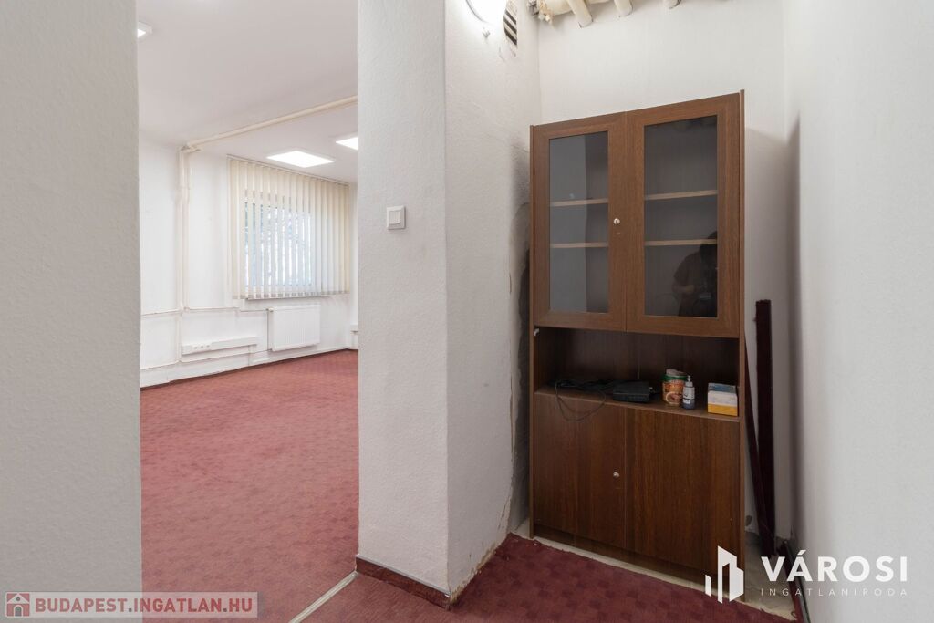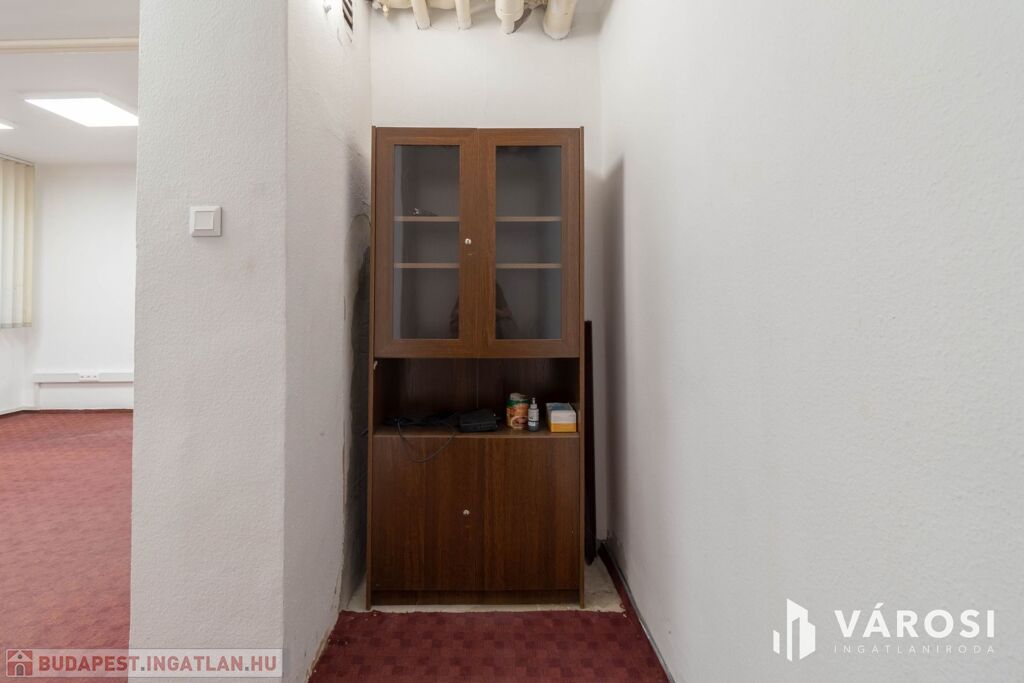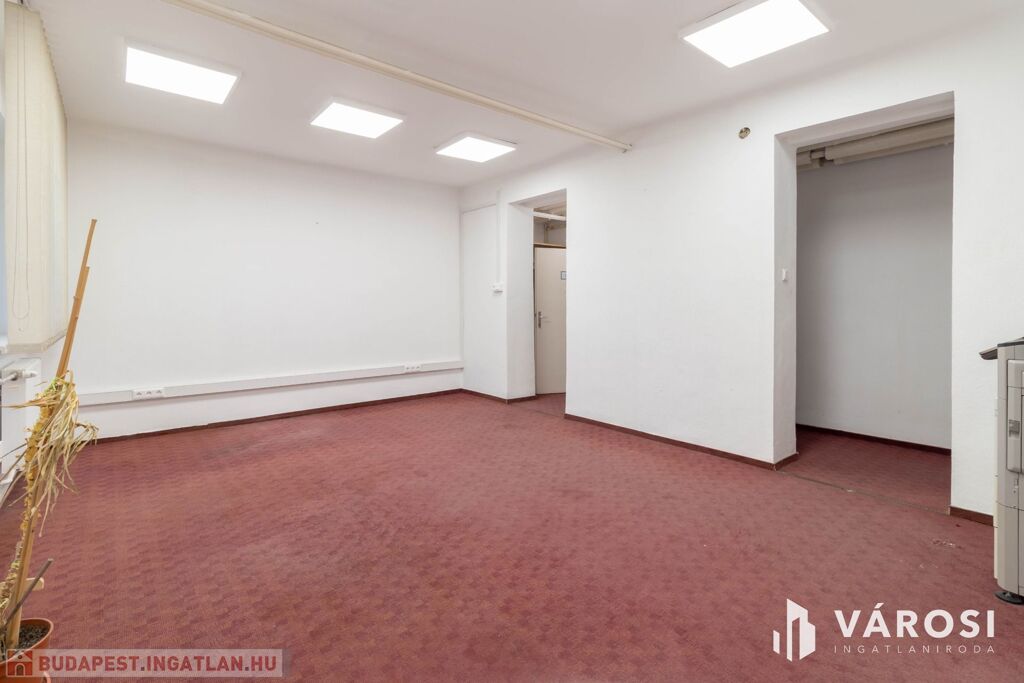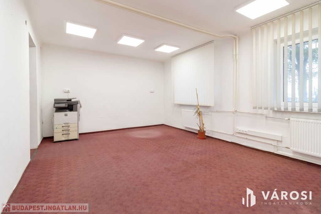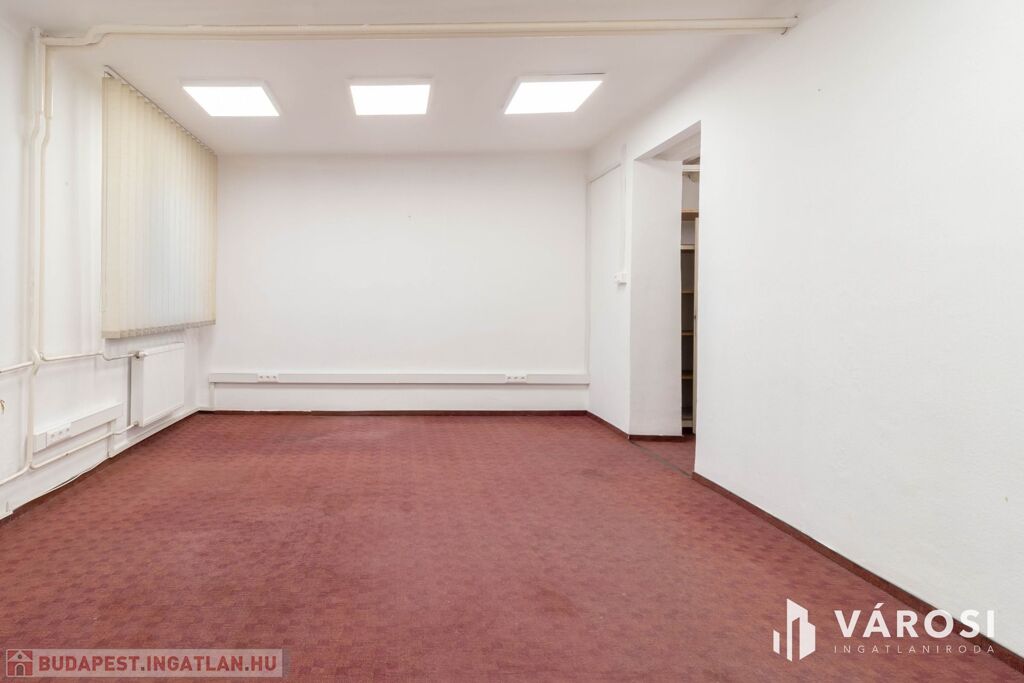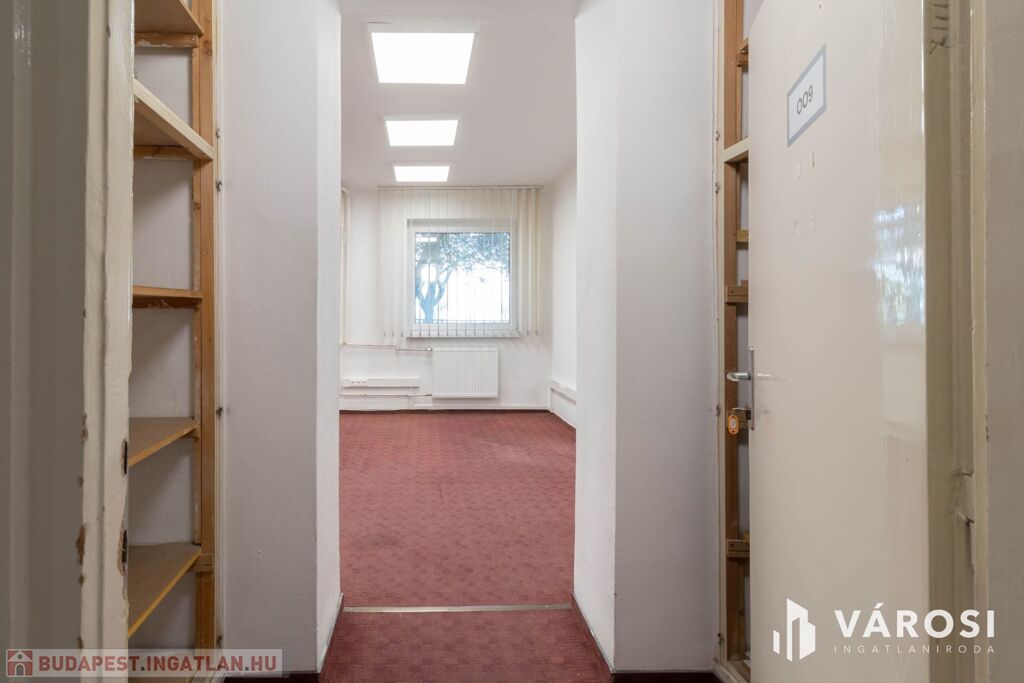A 32 m2-es iroda az irodaház földszintjén helyezkedik el. A helyiség padlószőnyegezett.