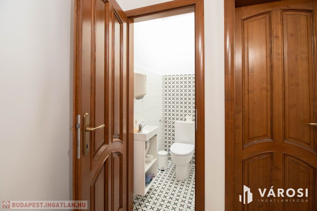 A földszinten egy, a fotókon is látható, a földszinti ügyvédi irodával közös használatú ügyfélváró helyiség került kialakításra, ahol stílusosan fogadhatja ügyfeleit. Itt található a felújított mosdó is.