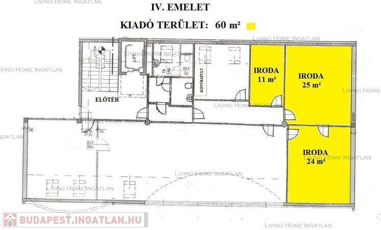 A teljes szinten belül egy vagy több iroda is bérelhető: 60 m2, 130 m2, 166 m2, 202 m2 terület.
