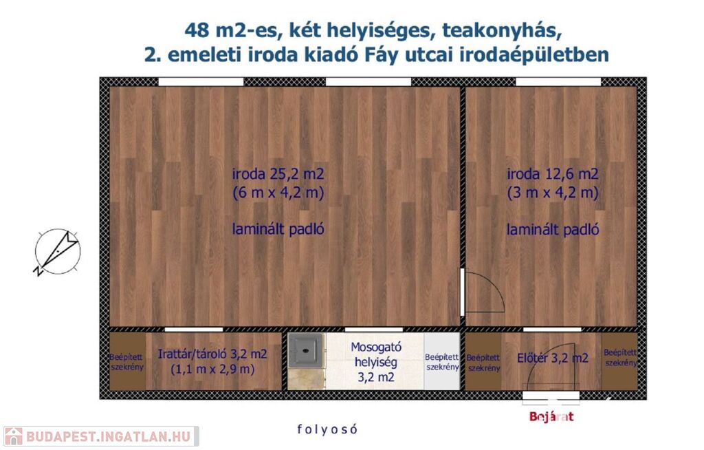 48 M2-ES, KÉT HELYISÉGES, TEAKONYHÁS, 2. EMELETI IRODA KIADÓ FÁY UTCAI IRODAÉPÜLETBEN