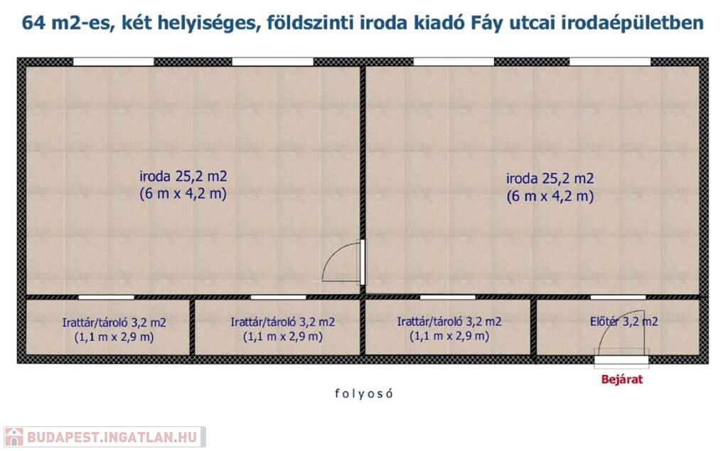 64 M2-ES, KÉT HELYISÉGES, FÖLDSZINTI IRODA KIADÓ FÁY UTCAI IRODAÉPÜLETBEN