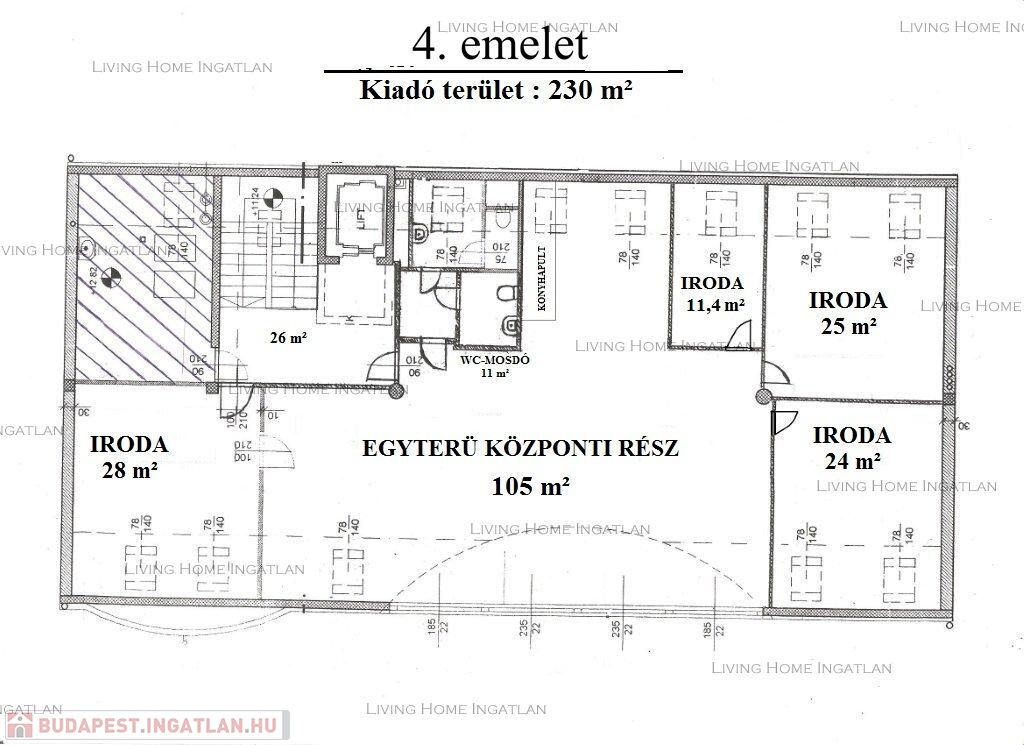 XIII. in Angyalföld for long term rent a 230 sqm office space on the fourth floor.
