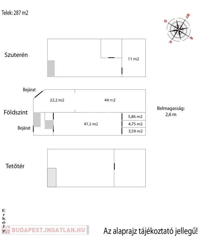 A ház 3 szintből áll, az alaprajzon látható elosztással és egy kis udvarral, ahol ki lett alakítva egy árubepakoló rész ill. akár autóval is beállhatunk.