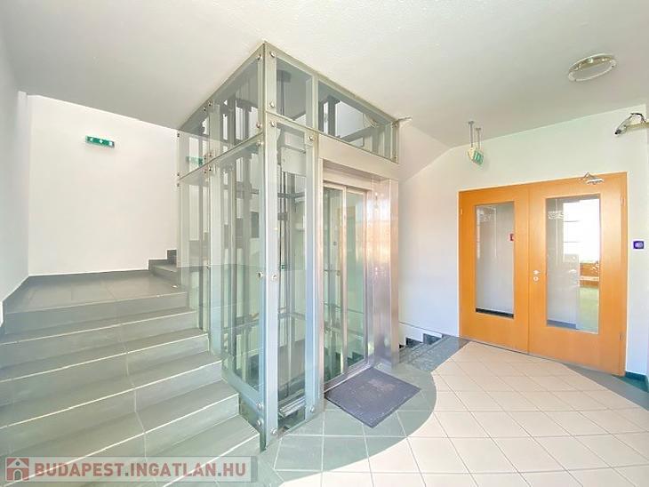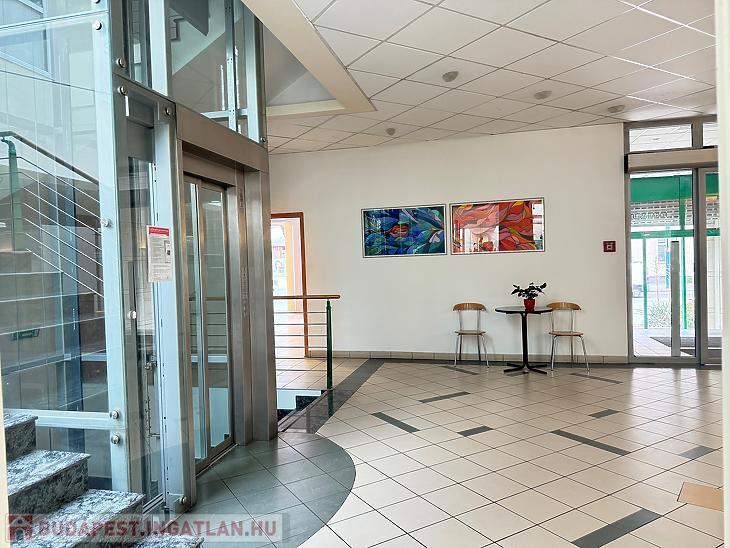 Az iroda szintet üvegliften és lépcsőn keresztül érjük el , az épület saját recepcióval és kamerarendszerrel felszerelt.