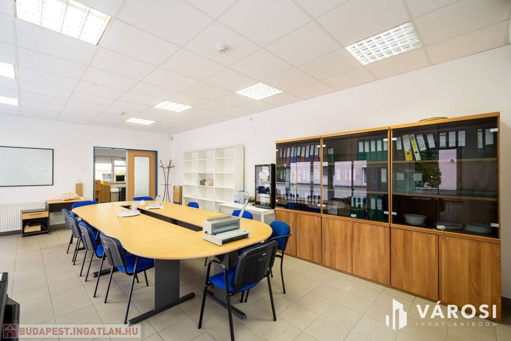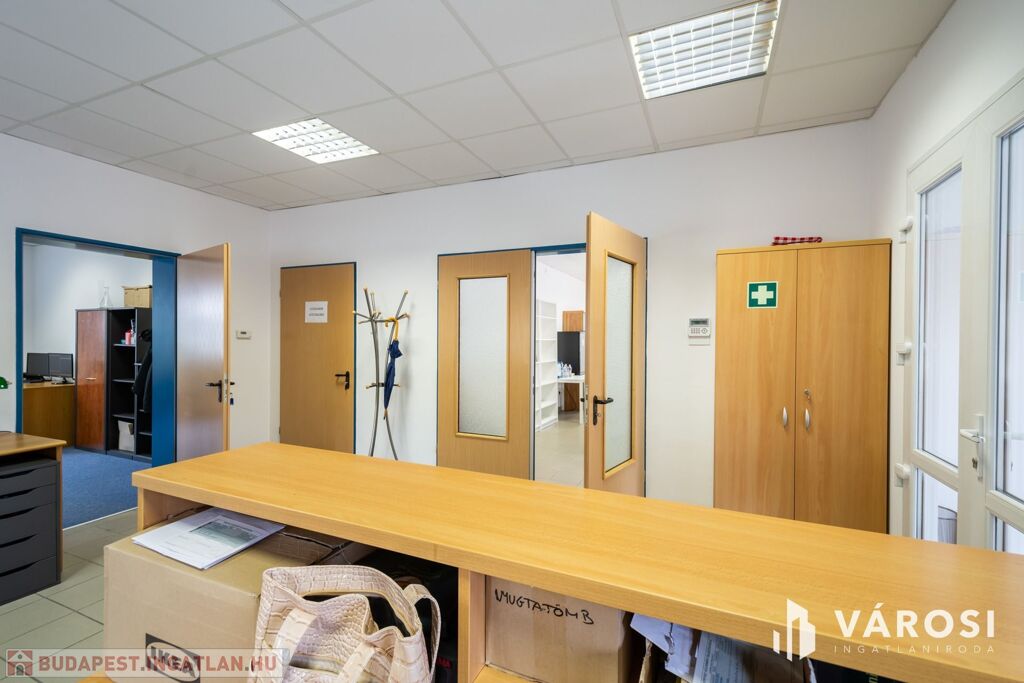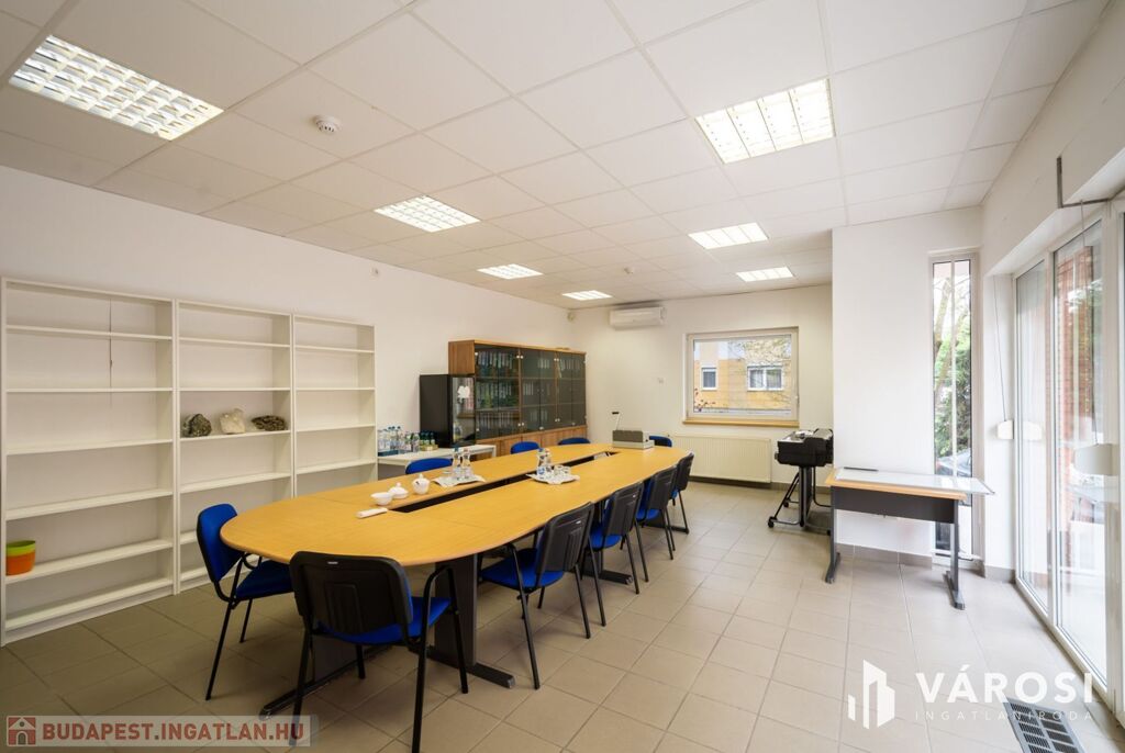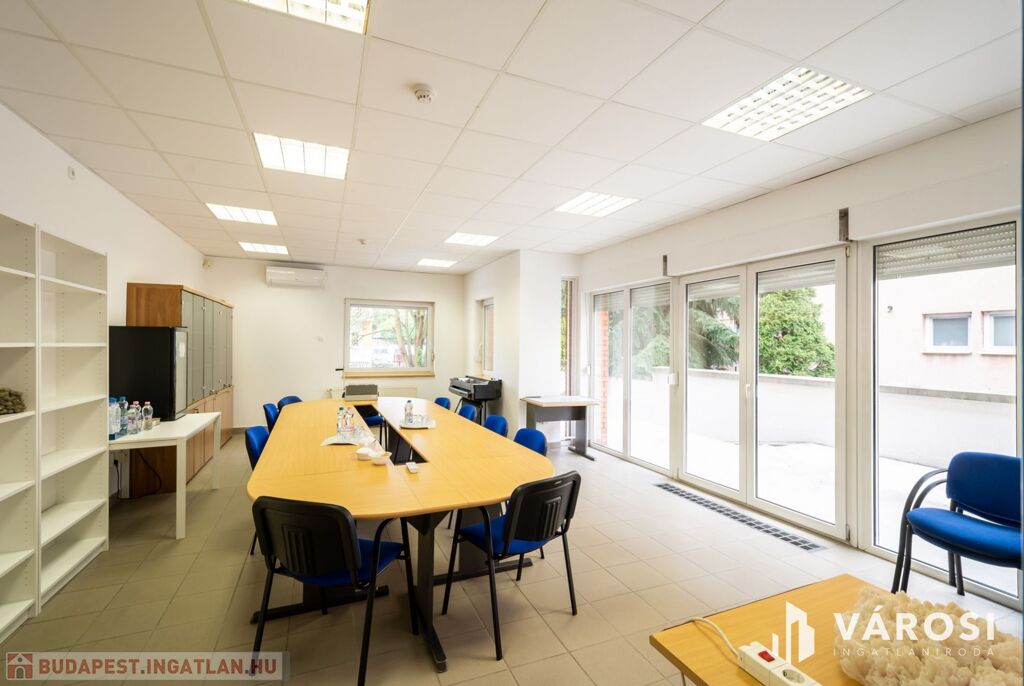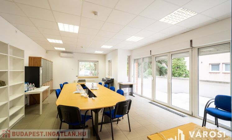 Az irodaterület 3 részből áll: 2 irodából és egy nagyméretű tárgyalóból, ami nagyon világos.