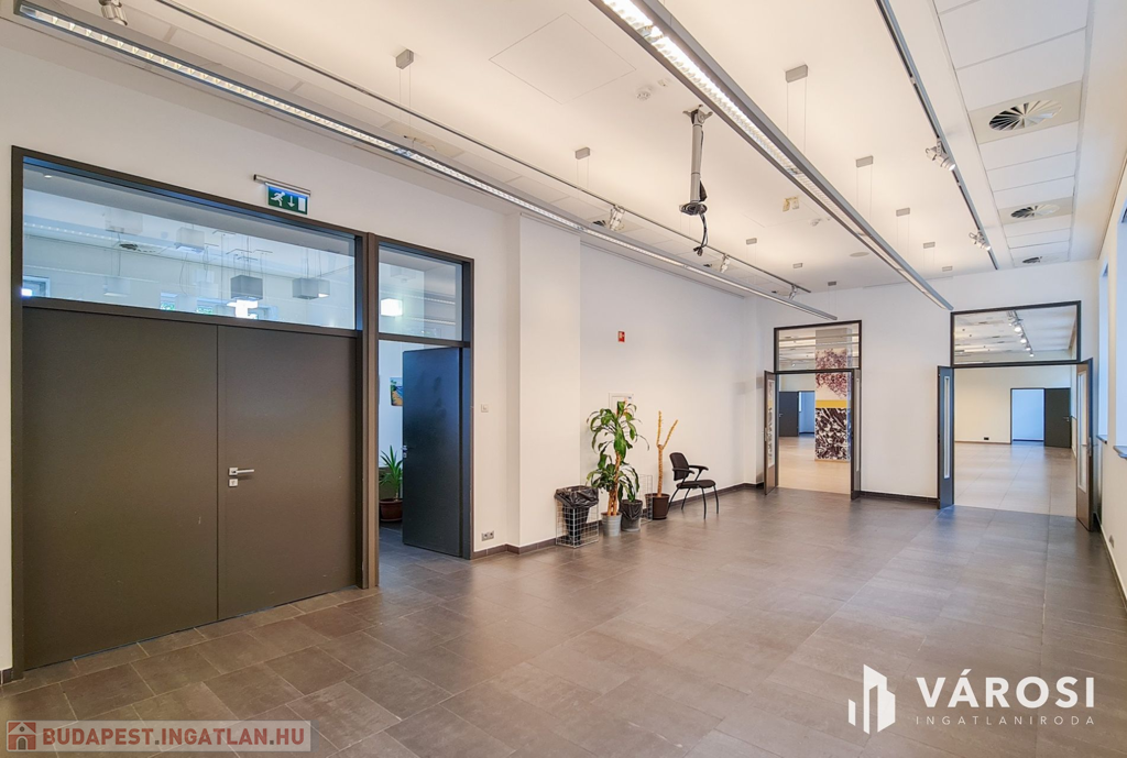 Jelenleg 2 nagyobb teremből (52 m2 + 168 m2), valamint 2 db irodának, raktárnak használható helyiségből áll, de a bérlő igényei szerint át is alakíthatja 8 – 10 db kényelmes méretű irodává / bemutatóteremmé.