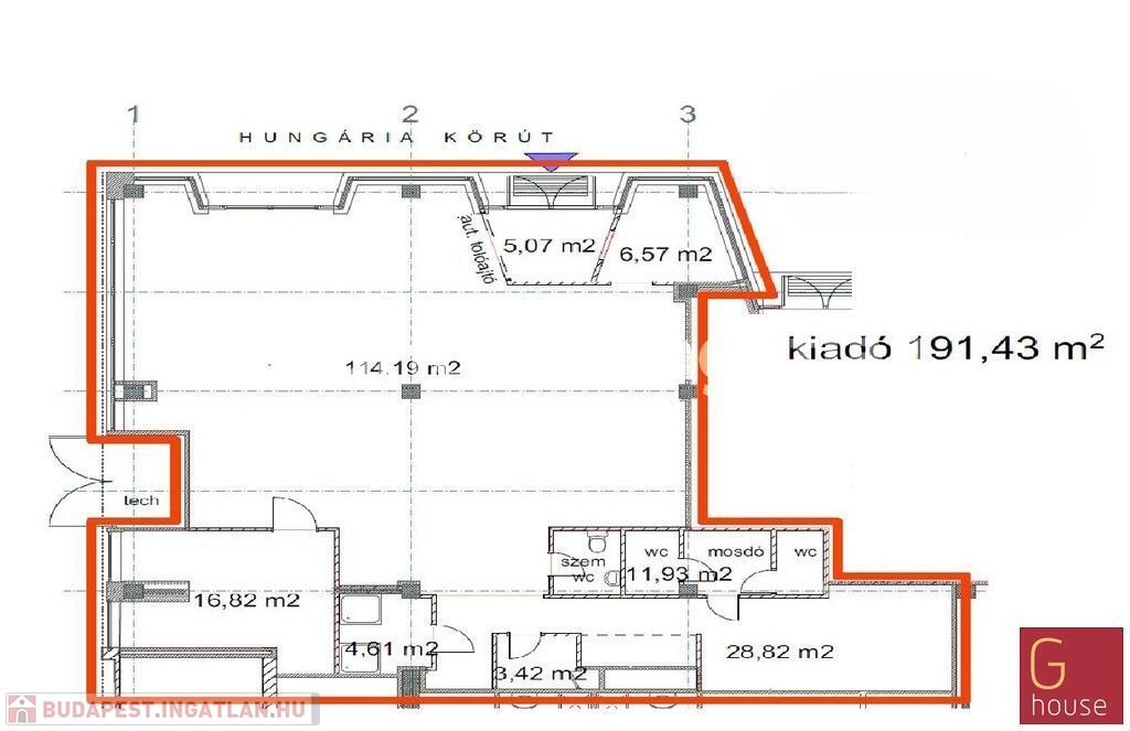 Kiadó egy 192 m²-es, földszinti, utcafrontos üzlethelyiség a Hungária Irodaházban, Budapest egyik legforgalmasabb csomópontjában.