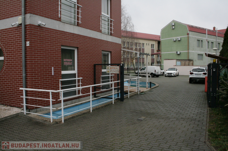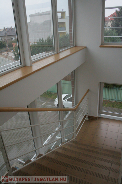 Pestszentlőrinc belvároshoz legközelebb eső, csendes, kertvárosi részén, főút közeli, 2008-ban épült, 'A' kategóriás, irodaházban 120 m2-es, külön bejáratú, 1. emeleti, 4 helyiségből álló, világos, kis forgalmú utcára néző, K-i tájolású, iroda minimum 1 évre kiadó. Üzemeltetési költség: 220.000 Ft./hó. Felszíni gépkocsibeálló bérelhető 17.500 Ft./db. Kaució 2 havi bérleti díj összege. Közös mellékhelyiség és konyha használat az emeleten. A feltüntetett árak a 27% Áfa-t nem tartalmazzák. A körbe kamerázott épület utca felőli oldalán van ingyenes, közterületi parkoló is. Udvari parkoló bérelhető. A 3-as metró kb. 10 perc alatt elérhető bkk autóbusszal vagy villamossal.