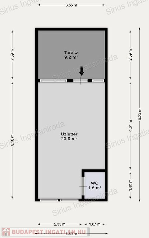 Az üzlet előtti rész díjmentesen használható, akár kialakítható egy 9 nm nagyságú terasz rész is.