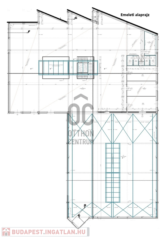 - emeleti részen (ö:495 nm ): üzlettér (421nm), 3 x17,7nm iroda, szociális helységek(10,3), gépészet (10,2 nm)