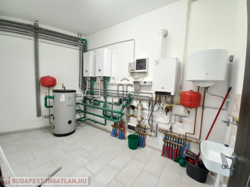 - fűtés/ hűtés rendszere: hőszivattyú, padló fűtés/hűtés, illetve 12 fan coil került felszerelésre, valamint van lehetőség kondenzációs gázkazán használatára