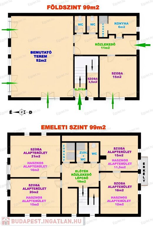 4 db SZOBA (21m2, 20m2, 16m2, 15m2)