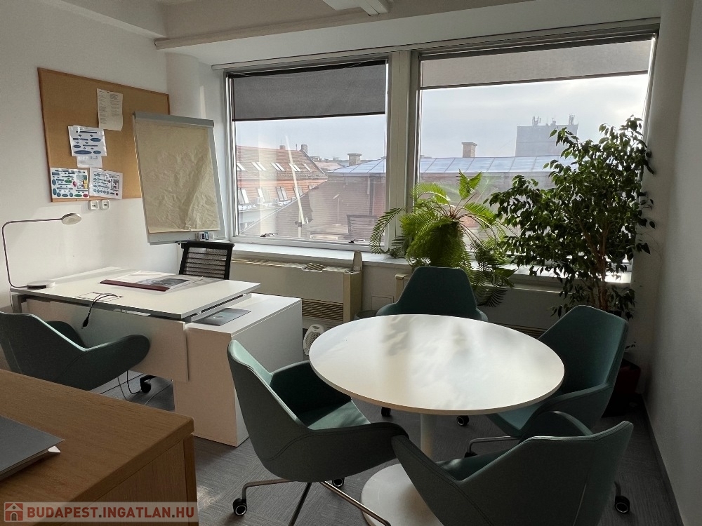 Győr-Belvárosának rendkívül kedvelt részén, Baross úttól, Széchenyi tértől pár másodperces sétatávolságra, rendezett, tiszta, liftes irodaház 5. emeletén, 157 m2-es tárgyalóból és 3 db méretes irodából álló, (17 m2, 26 m2, 29 m2) továbbá saját teakonyhával és szociális egységgel felszerelt, nagy üvegportálos, összesen 306 m2-es bútorozatlan iroda kiadó.