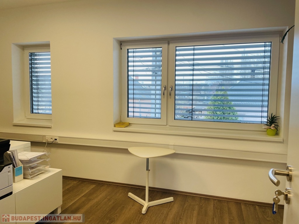 Az első emeleten elhelyezkedő iroda 67m2-es, 3 helyiségből áll amihez tartozik egy pár négyzetméteres raktár, saját teakonyha és mosdó. Az iroda fűtését modern geotermikus szivattyú biztosítja padló és fal fűtéssel. Az iroda bútorozatlanul kerül bérbeadásra.