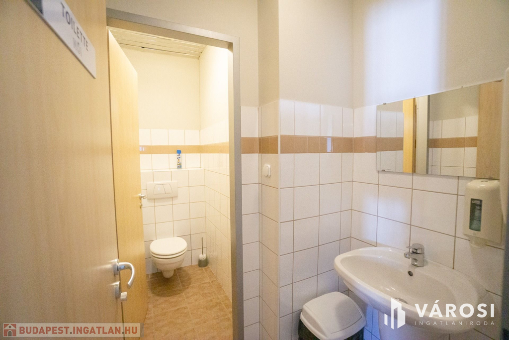 Az emeleti szinten, a folyosó elején található a közös használatú vizesblokk, külön női és férfi mosdó-wc, valamint egy kis ügyfélváró.